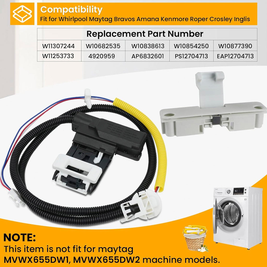 【호환성】W11307244 W10682535 세탁기 뚜껑 잠금 래치 교체 모델 NTW4516FW0 NTW4516FW3 WTW4655JW0 WTW4816FW2 WTW4955HW1 WTW5000DW1 WTW5000DW2 WTW5000DW3 WTW5005KW0 MVWC565FW1 등에 적합