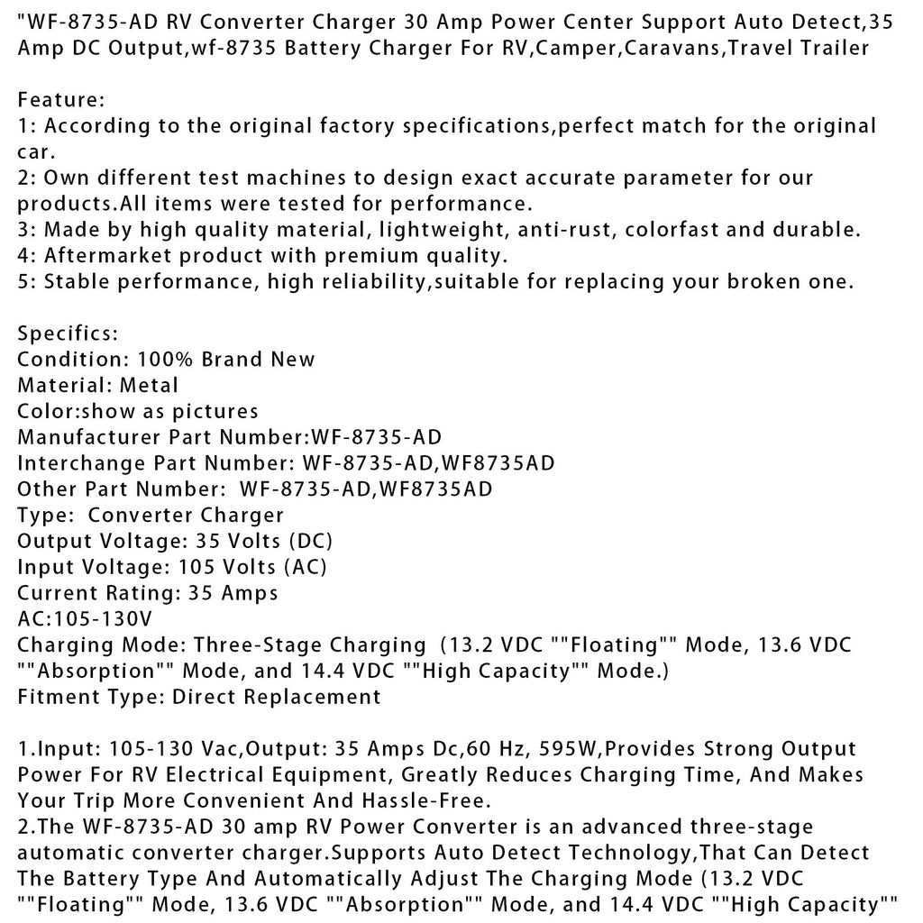 WF-8735-AD RV Converter Charger 30 Amp Power Center Support Auto Detect,35 Amp DC Output,wf-8735 Battery Charger For RV,Camper,Caravans,Travel Trailer
