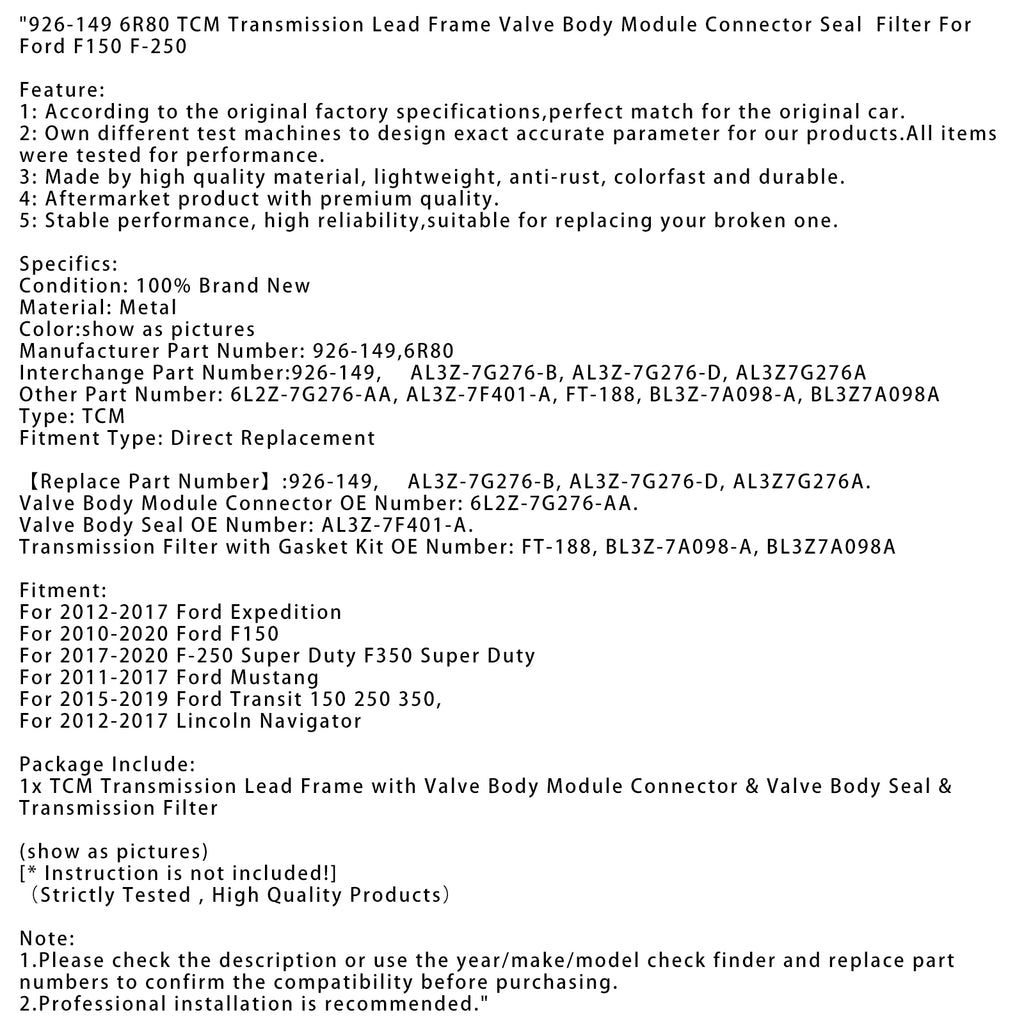 926-149 6R80 TCM Transmission Lead Frame Valve Body Module Connector Seal Filter For Ford F150 F-250