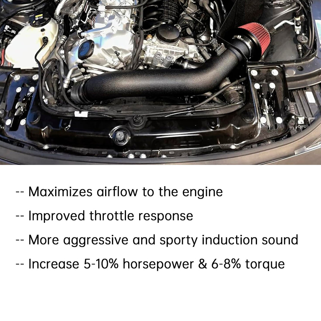 【Power & Torque Improvement】Cold air intake systems provide a less restrictive path for airflow, increasing the volume of cool, oxygen-rich air into your engine to increase 5-10% horsepower & 6-8% torque, improved fuel economy. Also your engine will growl during acceleration and return to silence after acceleration