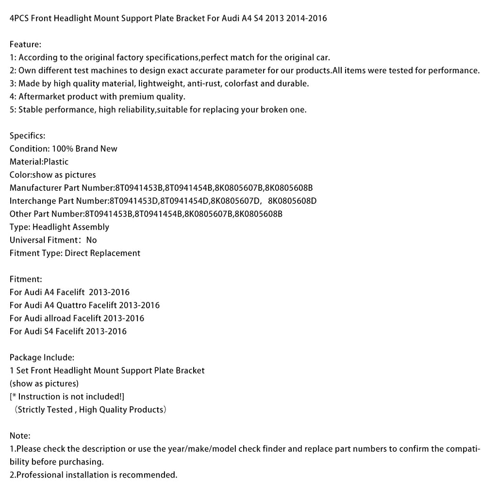 4PCS Front Headlight Mount Support Plate Bracket Fit For Audi A4 S4 2013 2014-2016