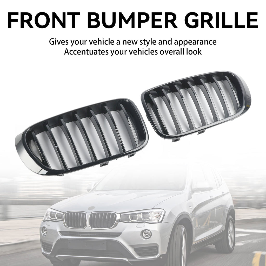 Gloss Black Front Bumper Kidney Grill Grille Fit For BMW X3 X4 F25 F26 2014-2017