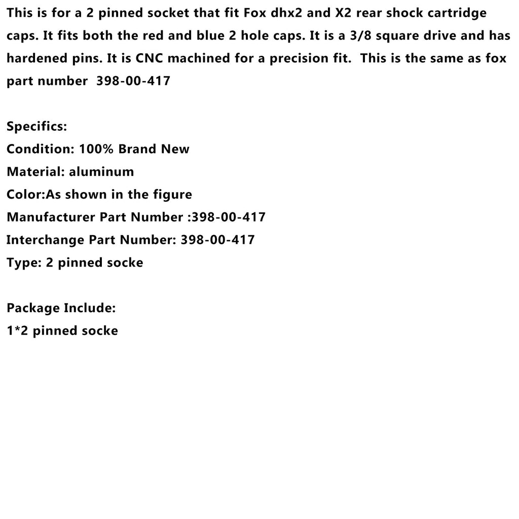 This is for a 2 pinned socket that fit Fox dhx2 and X2 rear shock cartridge caps. It fits both the red and blue 2 hole caps. It is a 3/8 square drive and has hardened pins. It is CNC machined for a precision fit. This is the same as fox part number 398-00-417