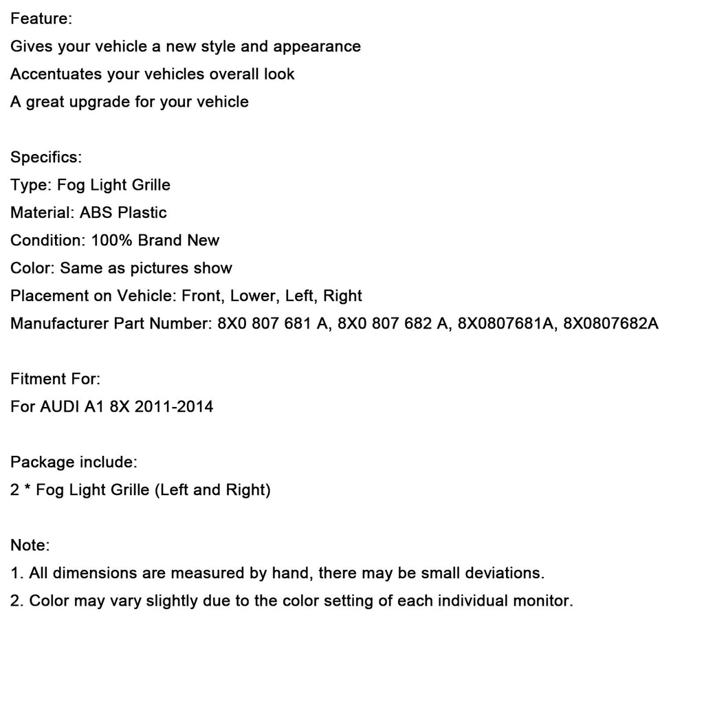 2PCS Fog Light Grille Front Bumper Grill Cover Fit Audi A1 8X 2011-2014