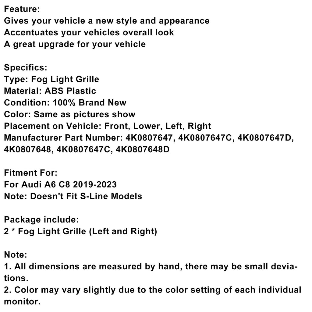 2PCS Front Bumper Fog Light Cover Grille Grill Fit for Audi A6 C8 2019-2023
