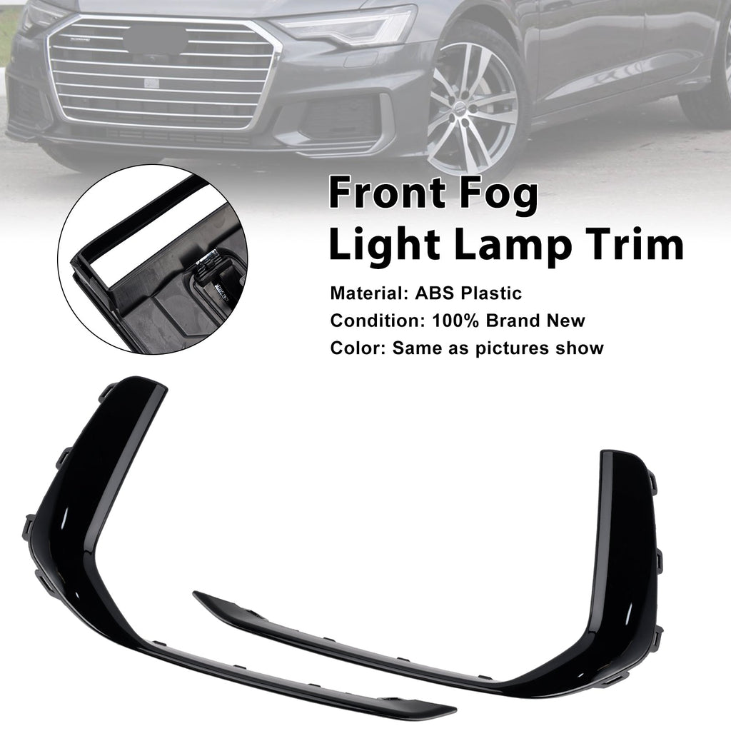2PCS Front Fog Light Lamp Trim Fit for Audi A6 C8 S-Line S6 2019-2023 Black