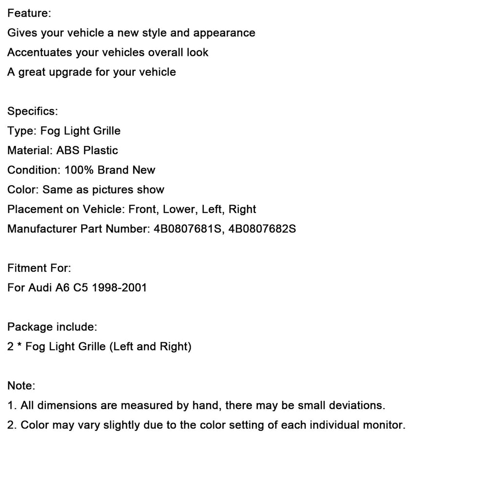 2PCS Front Lower Bumper Fog Light Cover Grille Fit Audi A6 C5 1998-2001