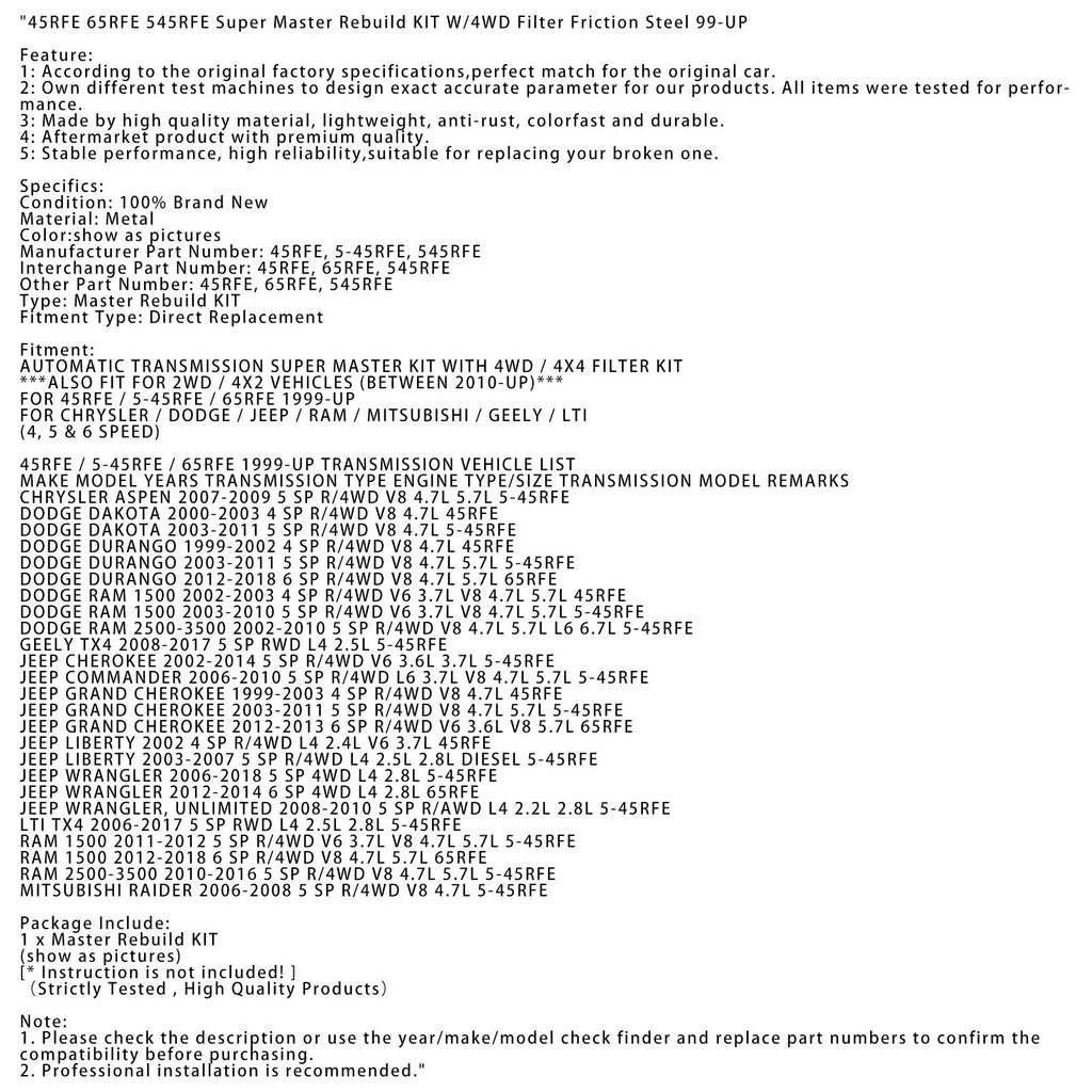 45RFE 65RFE 545RFE Super Master Rebuild KIT W/4WD Filter Friction Steel 99-UP