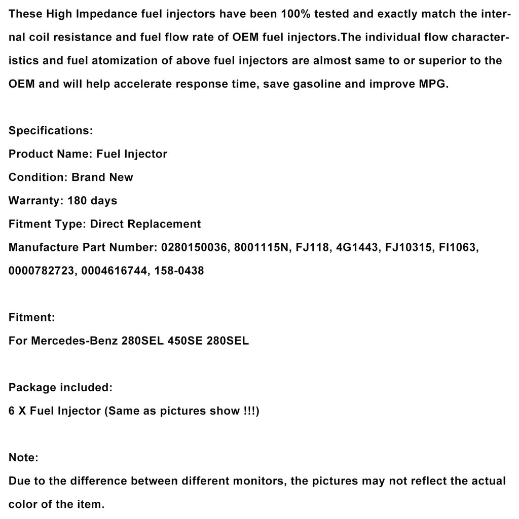 6PCS Fuel Injector 0280150036 Fit for Mercedes-Benz 280SEL 450SE 280SEL 4.5L V8