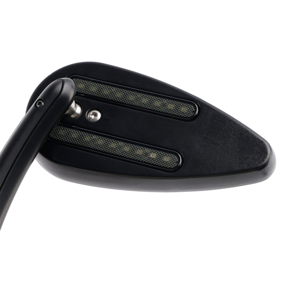 Incorporating forward-facing amber LEDs in a sleek teardrop-style mirror adds a modern touch to your ride while enhancing safety.