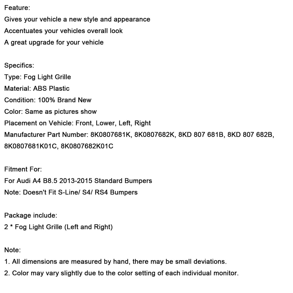 Note: Doesn't Fit S-Line/ S4/ RS4 Bumpers