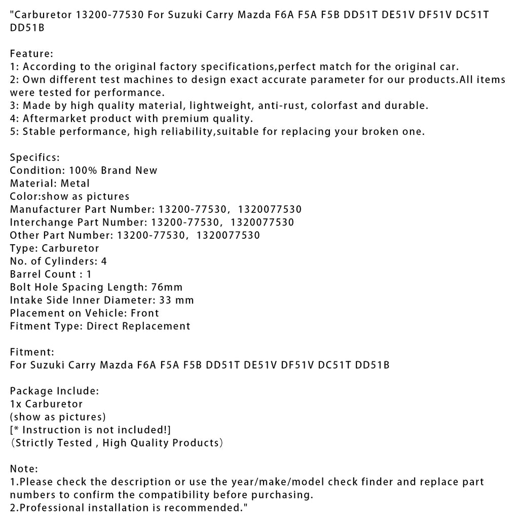 Carburetor 13200-77530 For Suzuki Carry Mazda F6A F5A F5B DD51T DE51V DF51V DC51T DD51B