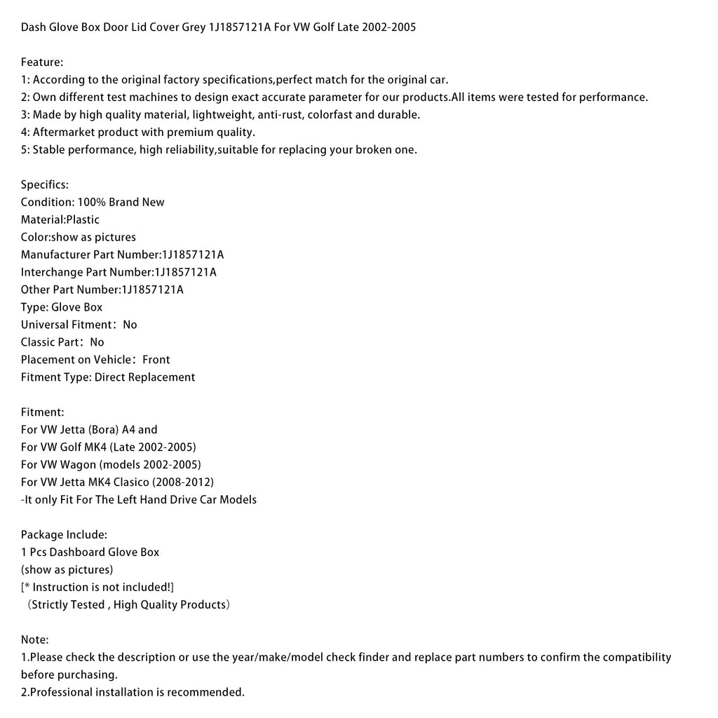 Dash Glove Box Door Lid Cover Grey 1J1857121A For VW Golf Late 2002-2005