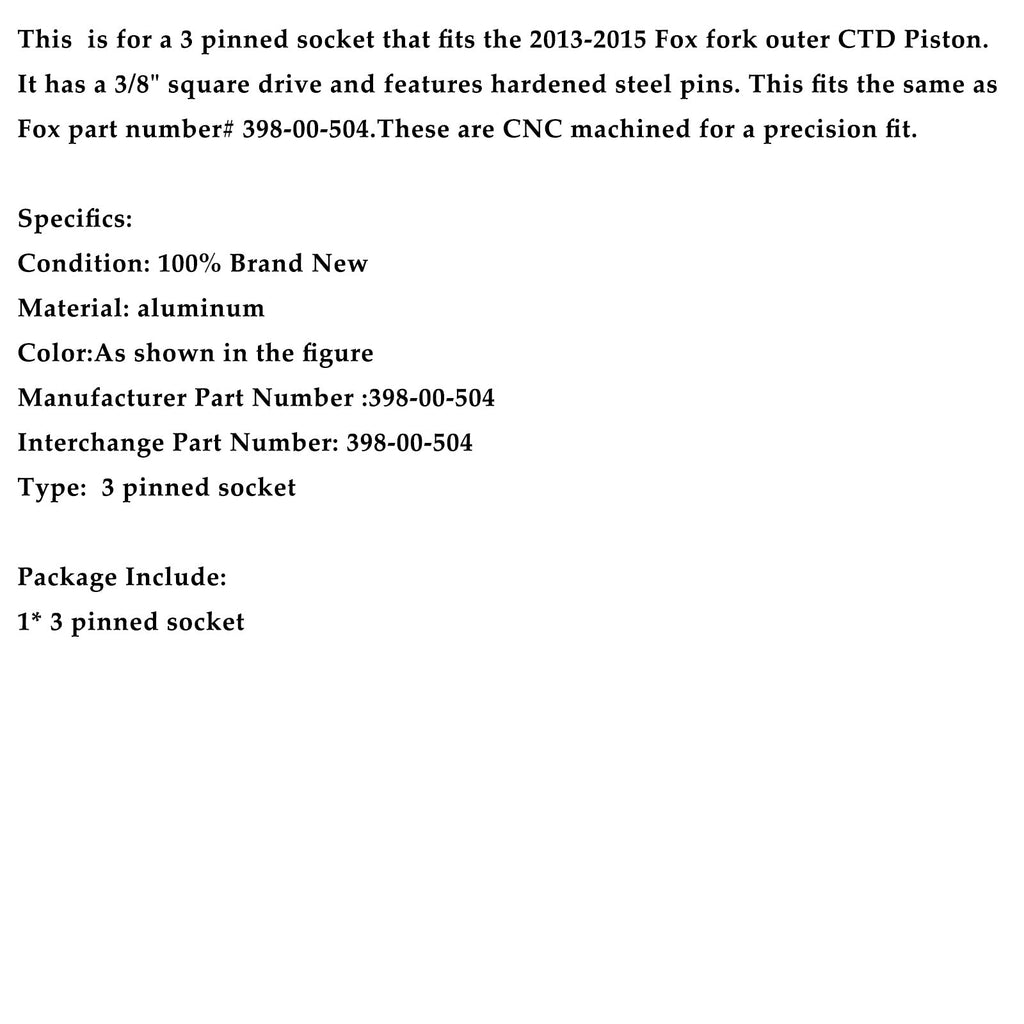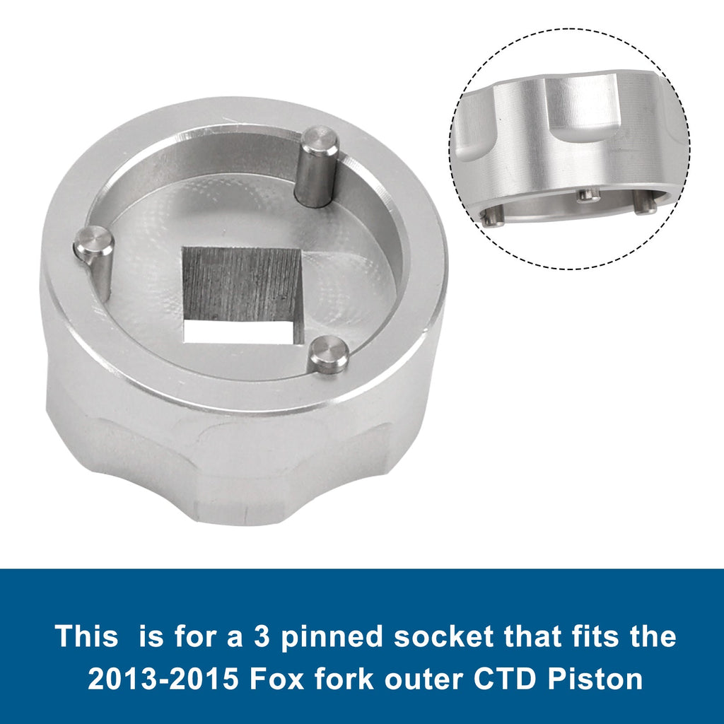 This is for a 3 pinned socket that fits the 2013-2015 Fox fork outer CTD Piston. It has a 3/8" square drive and features hardened steel pins. This fits the same as Fox part number# 398-00-504.These are CNC machined for a precision fit.