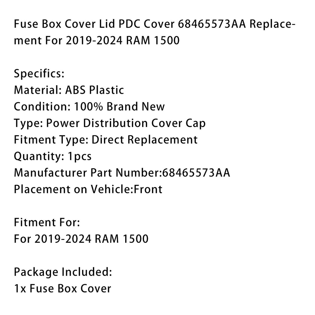 Fuse Box Cover Lid PDC Cover 68465573AA Replacement For 2019-2024 RAM 1500