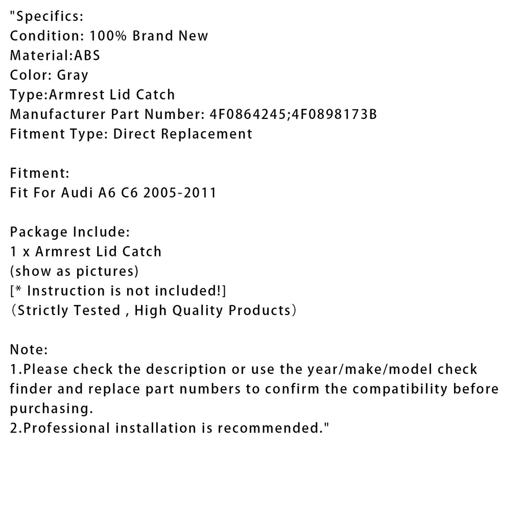 Gray Console Center Armrest Lid Latch For Audi A6 C6 2005-2011 4F0864245