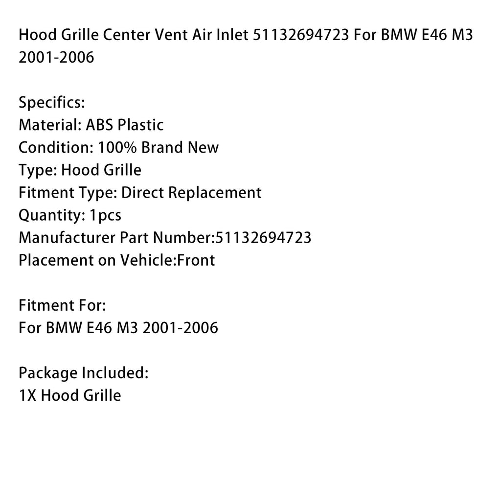Hood Grille Center Vent Air Inlet 51132694723 For BMW E46 M3 2001-2006