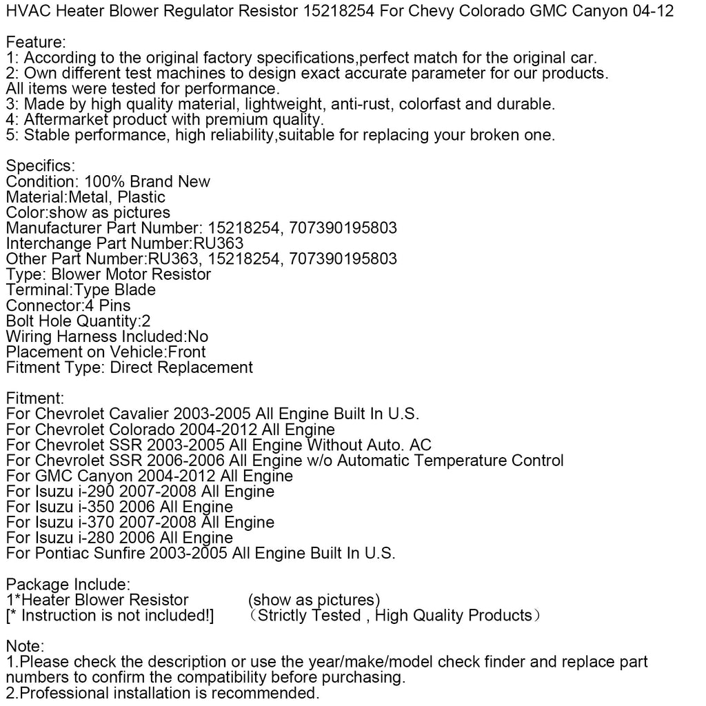 HVAC Heater Blower Regulator Resistor 15218254 Fit For Chevy Colorado GMC Canyon 2004-2012
