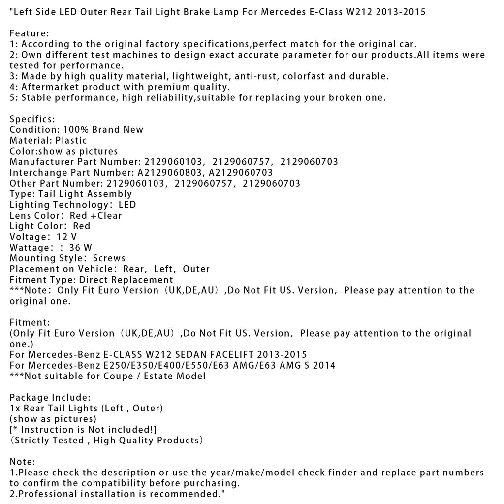 Left Side LED Outer Rear Tail Light Brake Lamp Fit For Mercedes E-Class W212 2013-2015