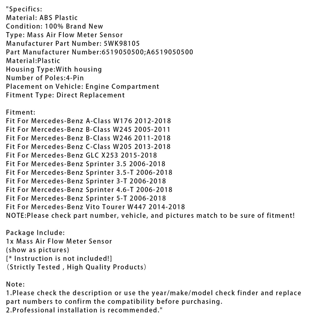 Mass Air Flow Meter Sensor For Mercedes W205 W176 GLC X253 CDI 5WK98105