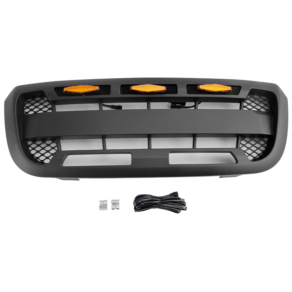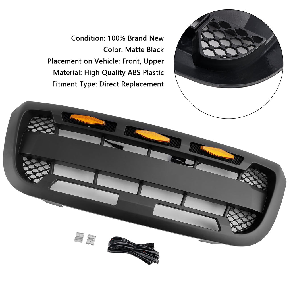 Matt Black Front Bumper Grill Grille Fit Ford Ranger 2004-2011 With LED Light