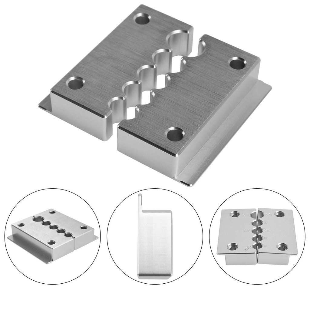 Aluminum is superior to the plastic versions in that it has better holding power (plastic ones struggle to hold tight enough on these smaller hole sizes). Also it has the rigidity to extend out past the vise for more room. Plastic loses holding power quick once they are past the vise jaw.