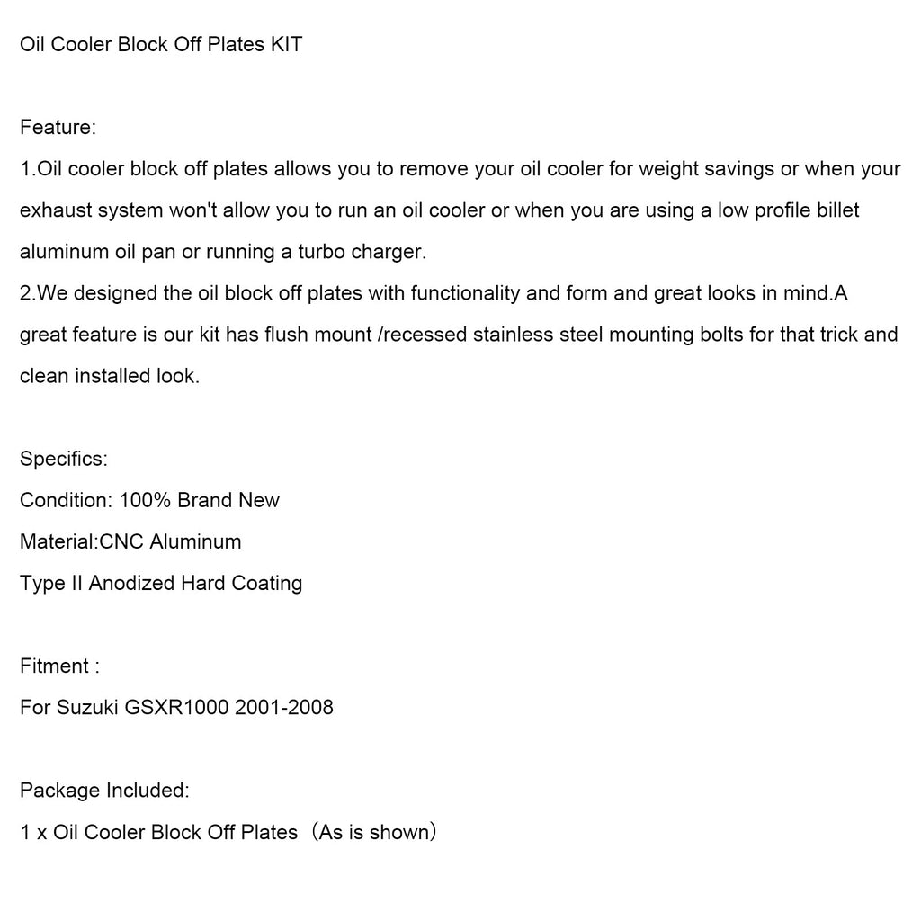 Oil Cooler Block Off Plates KIT Fit for 2001-2008 Suzuki GSXR1000