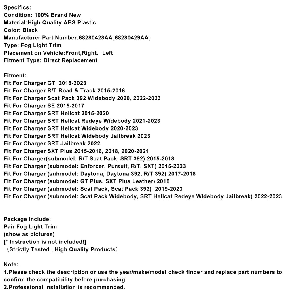 Pair Fog Light Bezel For Dodge Charger 2015-2022 68280428AA