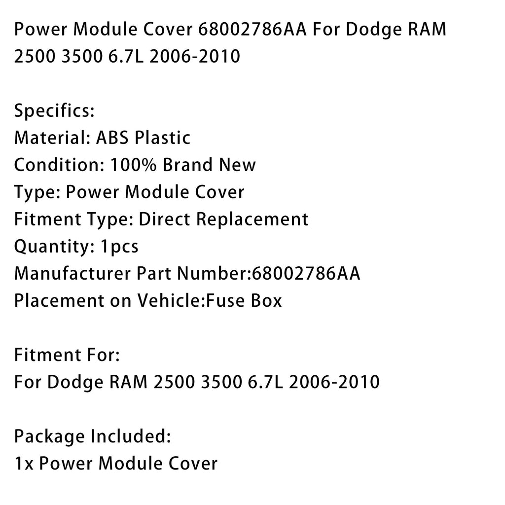 Power Module Cover 68002786AA For Dodge RAM 2500 3500 6.7L 2006-2010