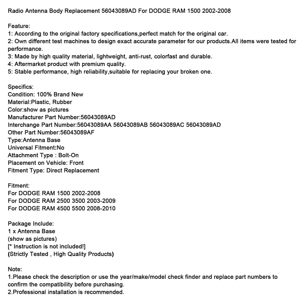 Radio Antenna Body Replacement 56043089AD For DODGE RAM 1500 2002-2008