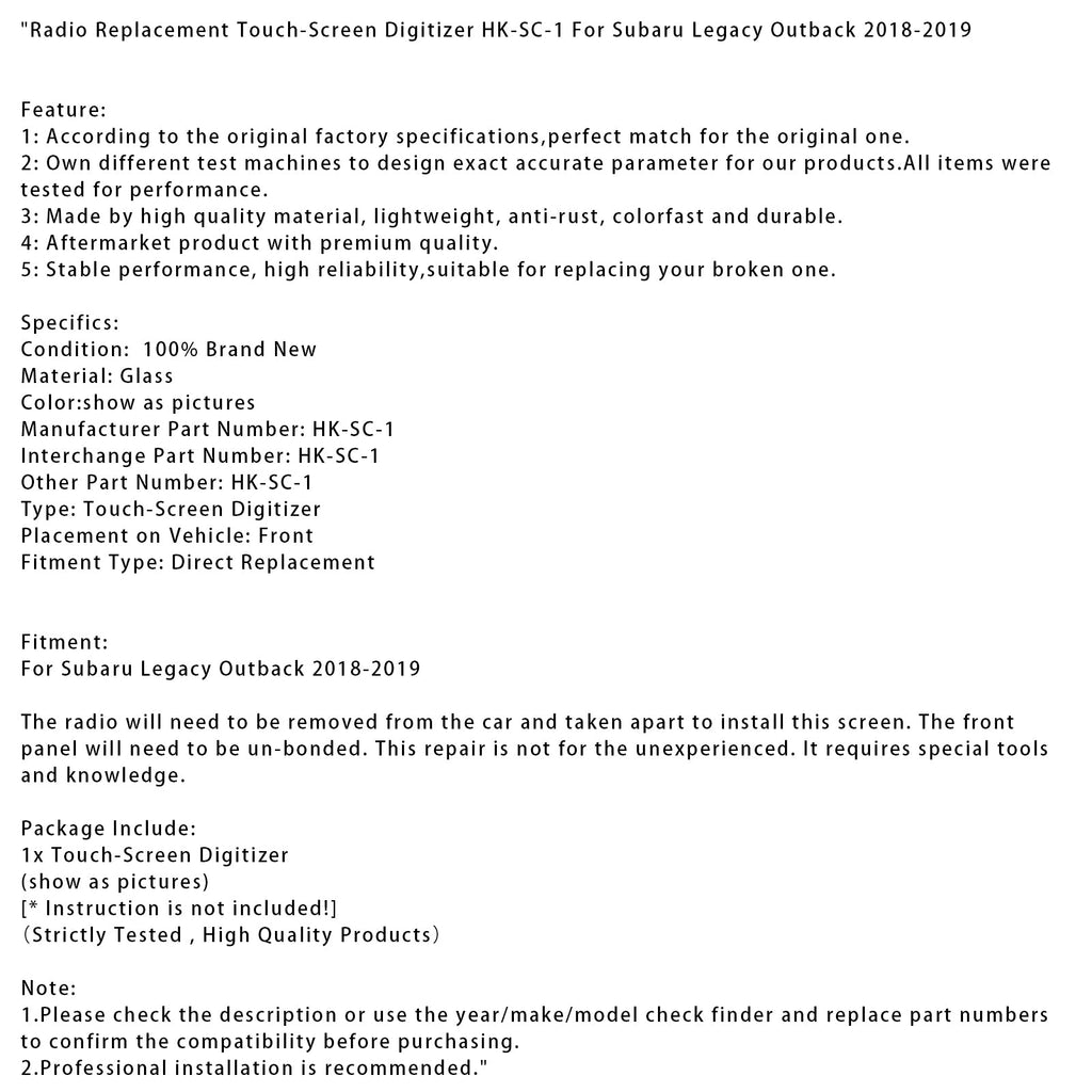 Radio Replacement Touch-Screen Digitizer HK-SC-1 For Subaru Legacy Outback 2018-2019