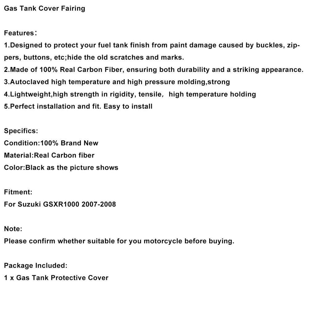 Real Carbon Fiber Tank Cover Fairing For Suzuki GSXR1000 2007-2008