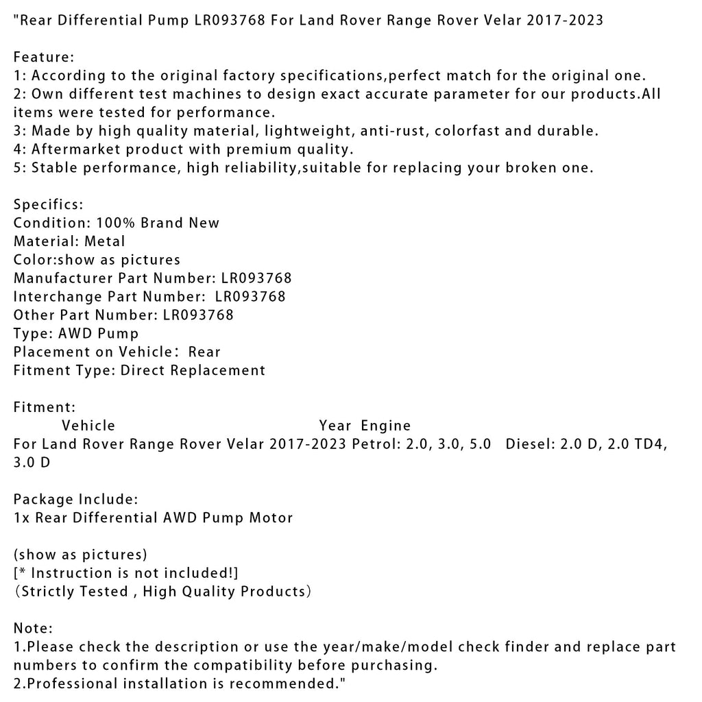 Rear Differential Pump LR093768 For Land Rover Range Rover Velar 2017-2023