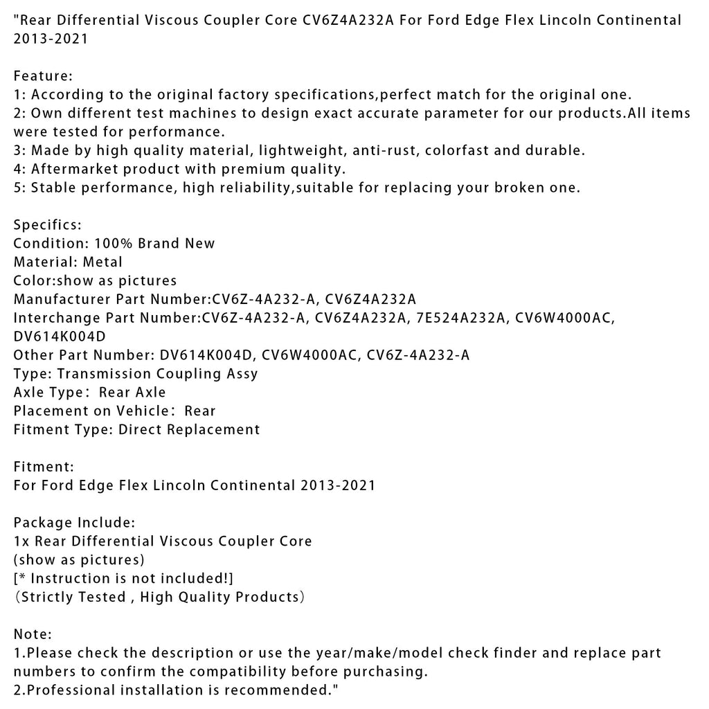 Rear Differential Viscous Coupler Core CV6Z4A232A For Ford Edge Flex Lincoln Continental 2013-2021