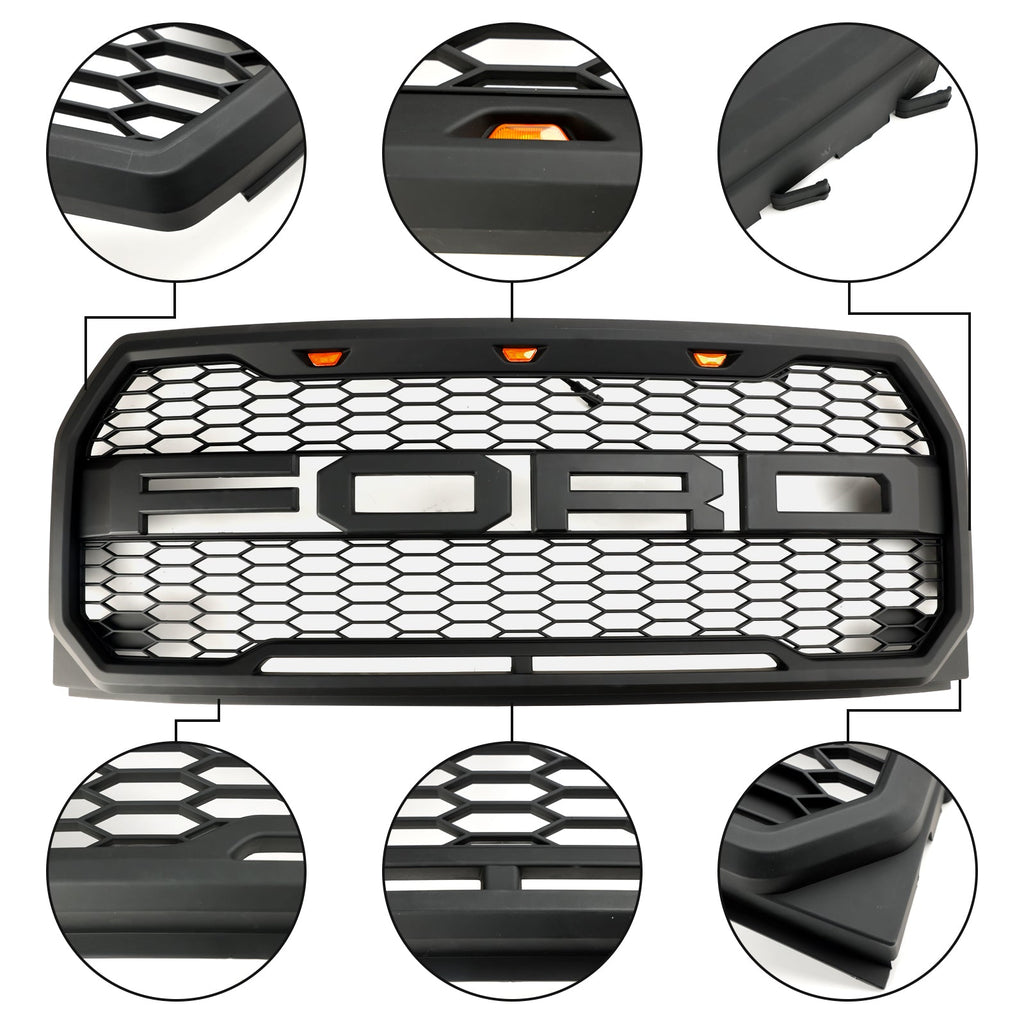Replacement ABS Front Bumper Grille Grill W/ LED Fit Ford F150 2015-2017 Raptor
