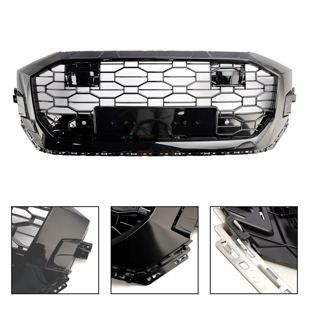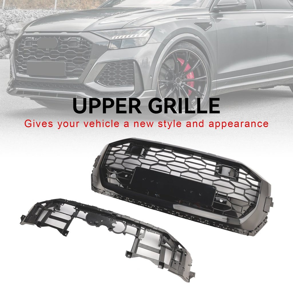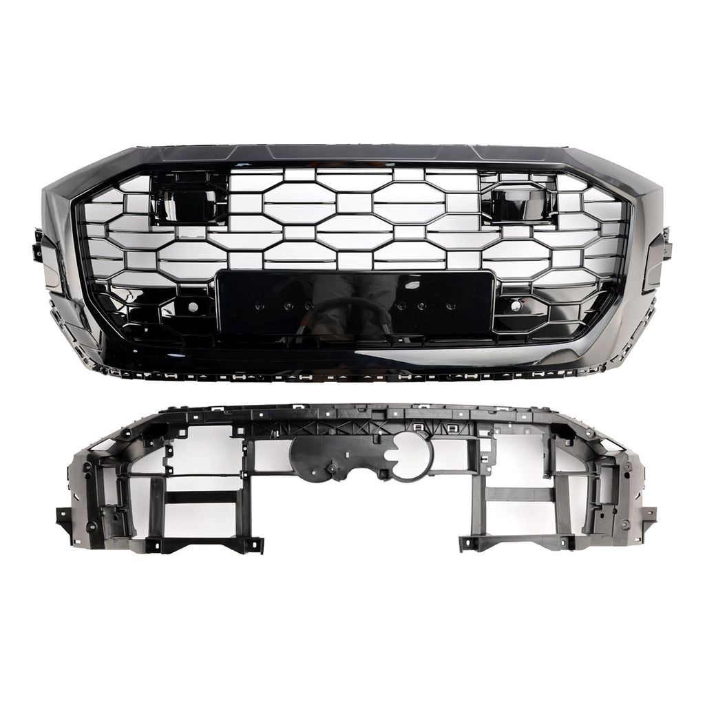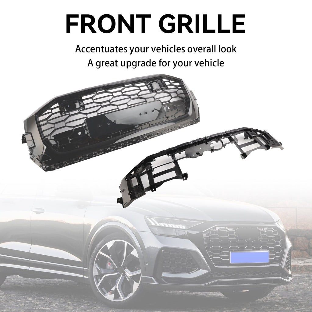 RSQ8 Style Gloss Black Front Honeycomb Mesh Grille Fit Audi Q8/SQ8 2019-2023