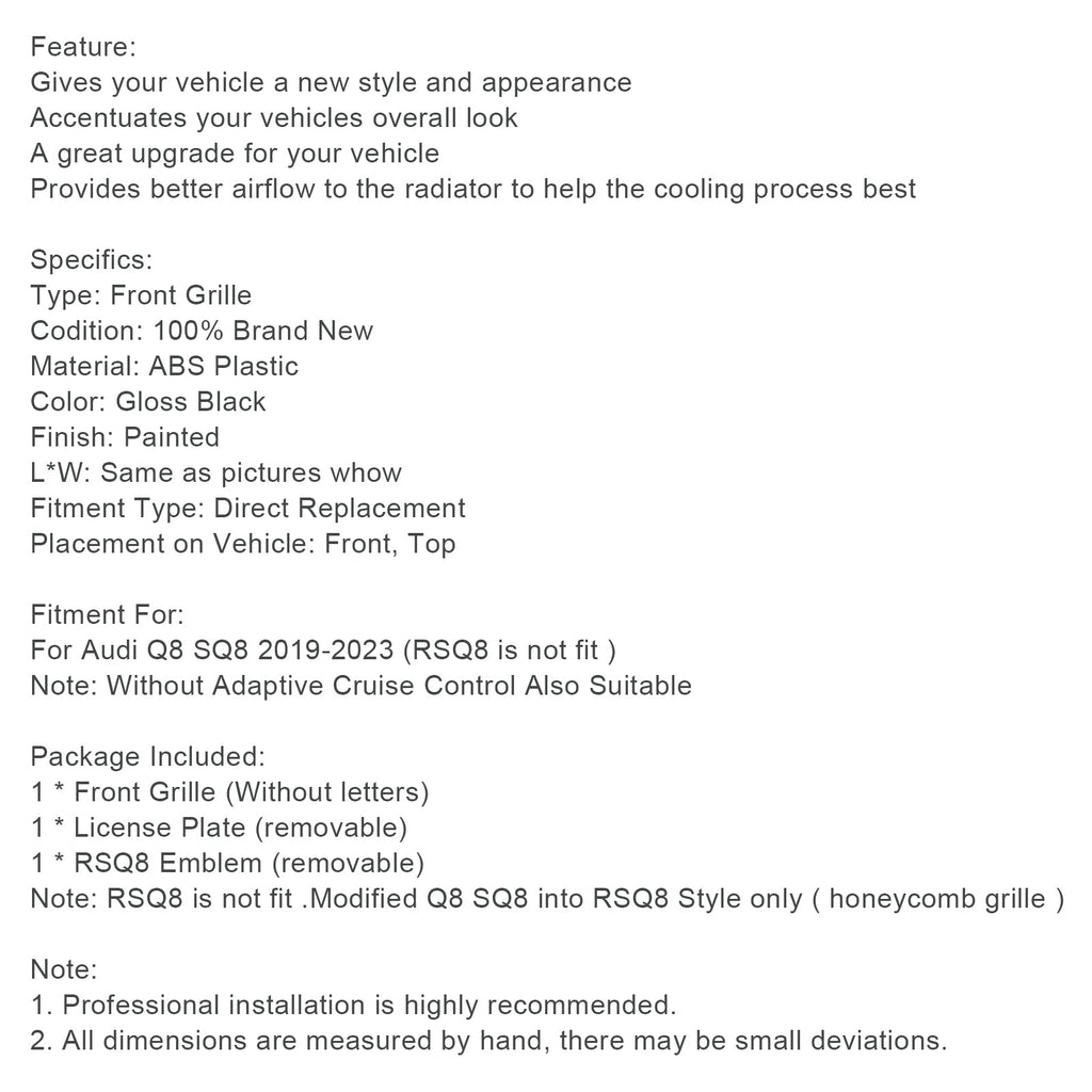 Note: RSQ8 is not fit .Modified Q8 SQ8 into RSQ8 Style only ( honeycomb grille )