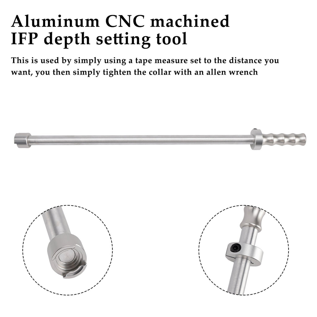 This is used by simply using a tape measure set to the distance you want, you then simply tighten the collar with an allen wrench. Then you push the IFP down using the tool until the collar is even with the top on the shock and your done. Just turn while pulling up with light pressure until the tool releases.