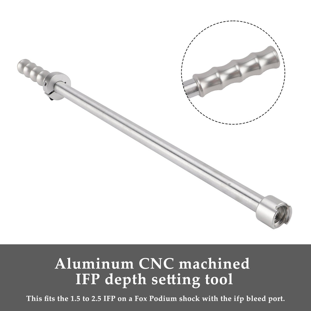 This is for a 6061 aluminum CNC machined IFP depth setting tool. This will not work for FOX bicycle shocks,. This fits the 1.5 to 2.5 IFP on a Fox Podium shock with the ifp bleed port.