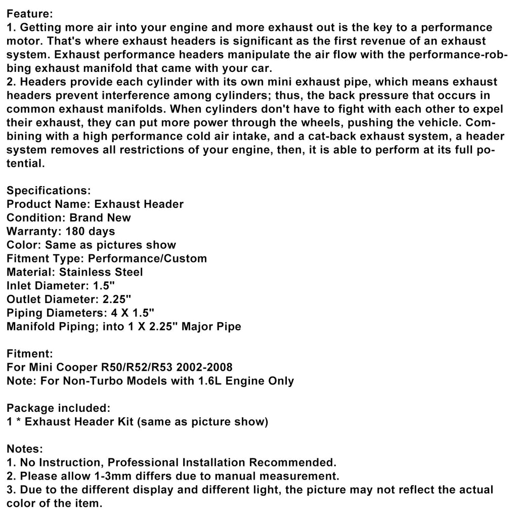 Stainless Steel Exhaust Manifold Header Fit Mini Cooper R50/R52/R53 2002-2008