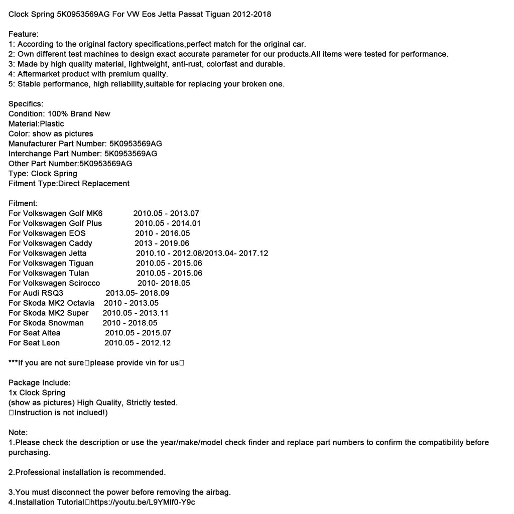 Clock Spring 5K0953569AG For VW Eos Jetta Passat Tiguan 2012-2018